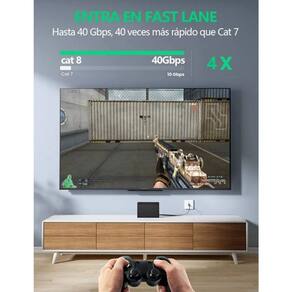 Cabo Ethernet CAT 8, velocidade de 40 Gbps, conectores banhados a ouro e 4 pares de pares trançados de cobre puro, revestimento de PVC de alta qualidade de 5 metros 1. Alta velocidade máxima: A velocidade de transmissão de dados do cabo Ethernet CAT 8 é de até 40 Gbps e um suporta uma largura de banda de até 2000 MHz, que é 4 vezes a frequência do cabo CAT 7, que é 40 vezes a frequência do cabo CAT6 ao navegar na Internet. Você não precisa se preocupar com a latência. Portanto, você pode se conectar ao segmento de rede LAN/WAN e equipamentos de rede na velocidade mais rápida. Quando você navega na Internet, não precisa se preocupar com o atraso. Conexão estável: possui conectores RJ45 banhados a ouro, feitos de 4 pares trançados blindados (STP) de fios de cobre 100% puros, o par trançado blindado com design anti-interferência, para garantir que atinja a largura de banda padrão Cat8-2000 MHz e transmissão de dados em alta velocidade de 40 Gbps.3. Boa qualidade: possui uma camada externa de PVC forte, o design fino e plano (2,4 mm de espessura) permite passar facilmente por todos os cantos, tanto no escritório quanto em casa, sem se confundir com a facilidade.4. Compatível: Para os padrões de cabos CAT7, CAT6, Cat6e, CAT5 e Cat5e. Compatível com redes domésticas, switches, modem, roteadores, painéis de patch, impressoras de rede, projetor, Xbox, PS2, PS3, PS4 e caixas de jogos com porta RJ45, etc.