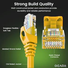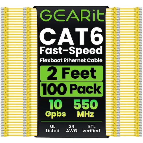 Prepare sua rede para o futuro para Ethernet de 10 Gigabit com cabos de conexão de rede GearIt Cat 6. Com os cabos GearIt Cat6, sua rede estará pronta para o futuro e continuará funcionando quando você chegar lá. Cabos verificados pelo padrão industrial ANSI/TIA-568-C.2, Cat 6 e ETL com conectores RJ45 (8P8C) sem enroscamentos de alta conformidade e botas de alívio de tensão moldadas. A classificação de largura de banda de até 550 Mhz garante compatibilidade com Ethernet 10BASE-T, 100BASE-TX (Fast Ethernet), 1000BASE-T (Gigabit Ethernet), 10GBASE-T (Ethernet de 10 Gigabit), Peer-to-Peer e quaisquer outros aplicativos que utilizem cabos de rede, incluindo telefonia, automação residencial e tecnologias de transferência de vídeo de longa distância, como HMDI sobre Ethernet. Use para conectar qualquer dispositivo em rede com conexão RJ45, incluindo PCs, laptops, servidores, impressoras, dispositivos de armazenamento NAS, VOIP, Power over Ethernet (PoE), DVRs, etc.