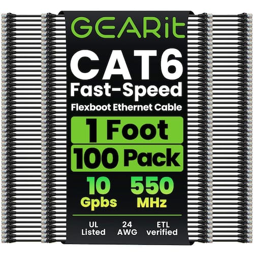 Prepare sua rede para o futuro para Ethernet de 10 Gigabit com cabos de conexão de rede GearIt Cat 6. Com os cabos GearIt Cat6, sua rede estará pronta para o futuro e continuará funcionando quando você chegar lá. Cabos verificados pelo padrão industrial ANSI/TIA-568-C.2, Cat 6 e ETL com conectores RJ45 (8P8C) sem enroscamentos de alta conformidade e botas de alívio de tensão moldadas. A classificação de largura de banda de até 550 Mhz garante compatibilidade com Ethernet 10BASE-T, 100BASE-TX (Fast Ethernet), 1000BASE-T (Gigabit Ethernet), 10GBASE-T (Ethernet de 10 Gigabit), Peer-to-Peer e quaisquer outros aplicativos que utilizem cabos de rede, incluindo telefonia, automação residencial e tecnologias de transferência de vídeo de longa distância, como HMDI sobre Ethernet. Use para conectar qualquer dispositivo em rede com conexão RJ45, incluindo PCs, laptops, servidores, impressoras, dispositivos de armazenamento NAS, VOIP, alimentação