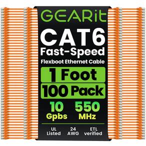 Prepare sua rede para o futuro para Ethernet de 10 Gigabit com cabos de conexão de rede GearIt Cat 6. Com os cabos GearIt Cat6, sua rede estará pronta para o futuro e continuará funcionando quando você chegar lá. Cabos verificados pelo padrão industrial ANSI/TIA-568-C.2, Cat 6 e ETL com conectores RJ45 (8P8C) sem enroscamentos de alta conformidade e botas de alívio de tensão moldadas. A classificação de largura de banda de até 550 Mhz garante compatibilidade com Ethernet 10BASE-T, 100BASE-TX (Fast Ethernet), 1000BASE-T (Gigabit Ethernet), 10GBASE-T (Ethernet de 10 Gigabit), Peer-to-Peer e quaisquer outros aplicativos que utilizem cabos de rede, incluindo telefonia, automação residencial e tecnologias de transferência de vídeo de longa distância, como HMDI sobre Ethernet. Use para conectar qualquer dispositivo em rede com conexão RJ45, incluindo PCs, laptops, servidores, impressoras, dispositivos de armazenamento NAS, VOIP, Power over Ethernet (PoE), DVRs, etc.