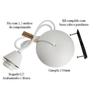 Fio de 1,5 metros ajustável ; Canopla plástica de 150mm; Bivolt 110v/220v; Soquete e27 rosca padrão ; Potência máx.: 60w; Bocal com rosca externa na ponta 32mm ;