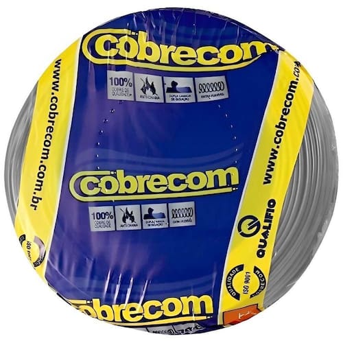 Cabo Flexicom de Cobre 4,0mm 750 Volts Cinza Com 100 Metros - 1150608401 - Cobrecom Cabo Flexicom Cinza de Cobre 750 Volts Com 100 Metros 4,0mm - 1150608401 - Cobrecom Cabo Flexicom de Cobre 4,0mm 750 Volts Cinza com 100 Metros - 1150608401 - COBRECOM Descrição: - Para tensões nominais até 750 V, formado por fios de cobre nu, eletrolítico, têmpera mole, Classe 4 (flexivel), isolado com policloreto de vinila (PVC), tipo PVC/EB.