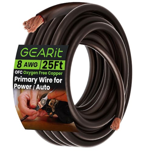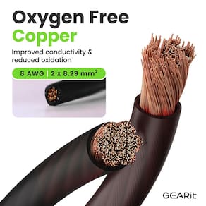Este cabo 8 AWG de cobre livre de oxigênio (OFC) da GEARit foi projetado para transmissão confiável e eficiente de energia em aplicações automotivas e elétricas. O condutor OFC oferece condutividade superior, tornando-o uma escolha econômica e eficaz para alimentação e aterramento. Seu comprimento de 7,6 metros fornece cabo suficiente para diversas instalações, desde amplificadores e subwoofers automotivos até trailers RV e cabos de bateria.
