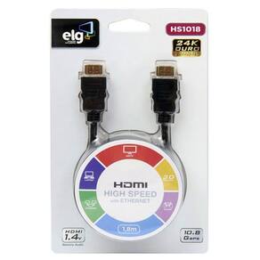 Cabo HDMI 1.4 High Speed ELG HS1018 1,8 metros Conector Banhado à Ouro Sem precisar de muitos cabos para conectar áudio e vídeo, o Cabo HDMI 1.4 High Speed é uma exclusividade da ELG, fabricado com tripla blindagem para fornecer maior fidelidade de sinal em som e imagem de uma só vez. Contando com conectores banhados à ouro, o Cabo HDMI possui 1,8 m de comprimento e combina qualidade e conveniência, incluindo canal de retorno de áudio que permite transmissão de áudio da TV para home theater sem precisar de cabo extra. Especificação Técnica: ? Cabo HDMI 1.4 High Speed HS1018 ? Marca: ELG ? 1,8 metros de comprimento ? Tripla blindagem ? Conectores banhados à ouro 24K ? Canal de retorno de áudio para transmissão para home theater ? Máxima fidelidade ? Performance livre de interferências ? Embalagem Polybag Conteúdo da Embalagem: ? Cabo HDMI Garantia: Garantia de 1 ano contra defeitos de fabricação. A Mega Empório não se responsabiliza pelo mau uso do produto.