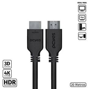 Cabo Hdmi 2.0 4k 30awg Puro Cobre 20 Metros - Phm20-20 Os cabos da PCYES chegaram para determinar um novo patamar de qualidade para aqueles que buscam mais para seus equipamentos de nível profissional, unindo inovação a um custo acessível! São duas linhas completamente desenvolvidas para suprir as necessidades até do consumidor mais exigente, utilizando de design, alta tecnologia e materiais de qualidade para alcançar a excelência. Projetados com foco nos entusiastas, os cabos da PCYES possuem design exclusivo e 100% brasileiro, que combina robustez com minimalismo, além de levar em si a essência da marca, garantindo maior durabilidade e desempenho. Descrição: Este cabo é indicado para dispositivos que possuam conexão HDMI tais como: TVs, monitores, Aparelhos Blu-ray, video-games, placas de vídeo, notebooks etc