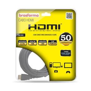 Cabo Hdmi 2.0 4k 3d 1080p 19+1 Pinos - 50cm Cabo HDMI de Alta Definição 2.0 - Brasforma HDMI5000