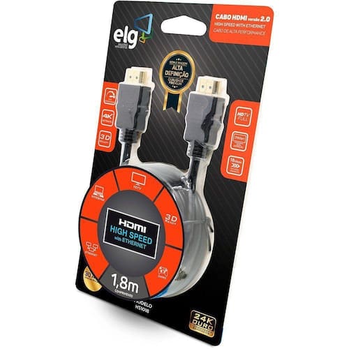 Cabo HDMI 2.0 4K High Speed Ethernet 1,8 metros HS1018 ELG - Ref: HS1018 Cabo HDMI 2.0v 4K 3D High Speed com Ethernet 1,8 metros HS1018 ELG