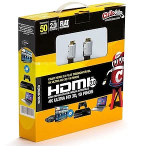 Cabo HDMI 2.0 FLAT Desmontável 19 Pinos, 4K, Ultra HD, 3D - 50 metros Apresentamos o Cabo HDMI 2.0 8K Resolução: 7680x4320 no tamanho de 50 metros. Uma versão de cabo super aprimorada, totalmente compatível com novos padrões de áudio como Dolby Atmos e DTS:X. Para os amantes de jogos pesados é compatível com VRR Variable refresh rate , faz com que quadros de imagens sejam imediatamente transmitidos após o processamento, reduzindo o lag, aumentando a fluidez das imagens. Ainda tem o QTF que diminui os atrasos em jogos de realidade virtual. Possui o HDR Dinâmico que dá mais realismo e impacto visual, se ajustando da melhor maneira conforme o conteúdo exibido. Sem falar na velocidade de transmissão de dados que pode chegar a 48 Gbps. Além de tudo isso que falamos, ele possui pontas banhadas a ouro, totalmente compatível com versões anteriores e o melhor: 8K UHD, ou seja, ele apresenta 16x mais detalhes nas imagens do que o FullHD. O Cabo HDMI 2.0 8K chegou para melhorar o padrão atual de cabos HDMI .Reproduz: 8K 60Hz e 4K 120Hz e e resoluções de até 10K. Bitola 30AWG Diâmetro 6,3 mm. Possui EMI excepcionalmente baixo interferência eletromagnética que reduz a interferência com dispositivos sem fio próximos. Homologação Anatel: 078531705567 Marca: Não Informado