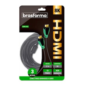 1 Cabo HDMI 8K 2.1v de Alta Definição de 3 metros – Brasforma HDMI-8103