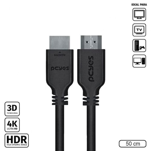 Os cabos da PCYES chegaram para determinar um patamar de qualidade para aqueles que buscam mais para seus equipamentos de nível , unindo inovação a um custo acessível! São duas linhas completamente desenvolvidas para suprir as necessidades até do consumidor mais exigente, utilizando de design, alta tecnologia e materiais de qualidade para alcançar a excelência. Projetados com foco nos entusiastas, os cabos da PCYES possuem design exclusivo e 100% brasileiro, que combina robustez com minimalismo, além de levar em si a essência da marca, garantindo maior durabilidade e desempenho. Descrição: Este cabo é indicado para dispositivos que possuam conexão HDMI tais como: TVs, monitores, Aparelhos Blu-ray, video-games, placas de vídeo, notebooks etc Dados Técnicos: Tamanho do cabo: 50 cm Material do cabo: cobre puro 30 AWG Largura de banda máxima: 18Gbit/s Resolução máxima: 4K (60Hz) Máximo de canais de áudio LCPM: 32 Taxa de áudio: 1536 kHz HDR Estático Suporta 3D Possui conexão Ethernet Conector HDMI macho/macho