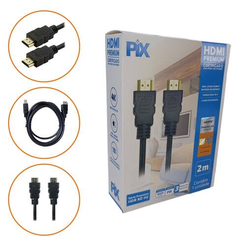 - Tipo: HDMI Premium Gold - Conectores: HDMI macho para HDMI macho - Comprimento: 2 metros - Certificação: High Speed com Ethernet - Resolução: Suporte para até 4K 3840 x 2160 - HDR High Dynamic Range : Sim - Material: Alta qualidade com conectores banhados a ouro para melhor condutividade e resistência à corrosão - Cor: Inserir cor, se necessário - Compatibilidade: Televisores, monitores, consoles de jogos, Blu-ray players, entre outros