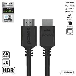 O Cabo HDMI Ultra 2.1 28AWG Puro Cobre 8K é a solução definitiva para quem busca qualidade excepcional e desempenho de ponta em transmissão de áudio e vídeo. Com certificação oficial pela HDMI.org, este cabo garante uma experiência superior, trazendo imagens ultra-realistas e som imersivo para sua sala de estar ou ambiente de entretenimento. Suportando resoluções impressionantes de até 8K (7680 x 4320) e taxas de atualização de 4K a 120Hz, 8K a 60Hz e 1080p a 144Hz, ele proporciona uma fluidez incomparável para vídeos e jogos, eliminando atrasos e artefatos visuais.