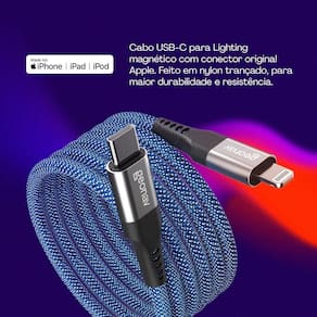 A Conexão Mágica para Carregar e Sincronizar seu iPhone: O Cabo Magnético da Geonav revoluciona a forma de carregar seu iPhone. Deixe o conector Lightning plugado no aparelho e conecte o cabo com a força do ímã, de forma rápida, fácil e segura. Conexão Magnética Prática: Evita o desgaste da porta do seu iPhone e permite conectar o cabo com apenas uma mão. Ideal para usar no carro. Carregamento Rápido (Power Delivery): Sendo USB-C para Lightning, é compatível com o carregamento rápido de 20W para iPhones mais recentes. Nylon Trançado e Resistente: O revestimento em nylon trançado garante uma durabilidade superior. Comprimento de 1,5 metros. Palavras-chave: Cabo Magnético, USB-C para Lightning, Geonav, Carregamento Rápido, iPhone, Power Delivery, Nylon.