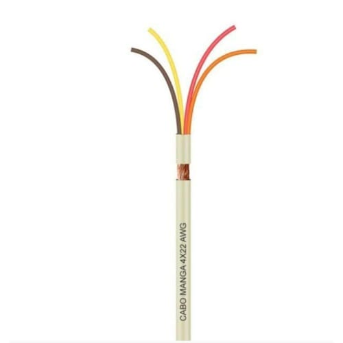 Cabo Manga 4 Vias 22 AWG 4x22AWG para Iluminação de Piscinas LED RGB - 50 Metros Cabo Manga 4x22 AWG para Iluminação LED RGB - 50 Metros O cabo manga 4x22 AWG é utilizado para interligar, Centrais de Comando com Refeltores, Fitas de Led RGB, conduzir sinais interligando Computadores e Periféricos, Equipamentos Eletrônicos, Industriais, Instrumentação, serve para Automação Comercial e Industrial bem como Automação Predial é também utilizado em Centrais de Dados. Ideal para realizar a instalação de todos os tipos de refletores para piscina. Características: Modelo: 4x22 AWG Sem BlindagemDiâmetro: 0,644mmSeção Reta: 0,326mmCondutor Flexivel com Fios 100% CobreCapa Anti-Chama Especificações para a ligação dos fios do Cabo Manga com a Central de Comando RGB: Fio Cor Marrom = PositivoFio Cor Laranja = Cor Vermelho Red Fio Cor Amarelo = Cor Verde Green Fio Cor Vermelho = Cor Azul Blue Itens Inclusos: 50 metros de Cabo Manga 4x22AWG Marca: Sol E Água Piscinas E Acessórios