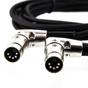 Cabo Midi Profissional Pontas Metálicas 90/90 - 10 Metros O cabo MIDI 5 pinos também conhecido em algumas regiões como DIM é muito utilizado em teclados musicais, Pianos, pedaleiras, interfaces entre outros aparelhos em especial os mais antigos, o Cabo MIDI - Musical Instrumentos Digitais Interface é produzido com material de qualidade liga metálica e é indicado para interligar aparelhos que tenham entrada e saída com a tecnologia MIDI. Tenha transmissão de áudio com nitidez e profissionalismo. Uma Ponta 90 outra Ponta 90.