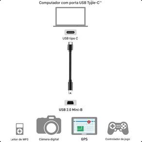 Cabo Mini USB 3 MT Transferência e Carga USB-C para Mini USB
