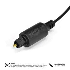Dados Técnicos: Tamanho do cabo: 1M 28 AWG Áudio Dolby DTS Atenuação:<180 dB/km Tamanho da onda: 650 nm Largura dos volumes de áudio: 32-bit Taxa de bits: 125 Mbit/s Marca: Não Informado Ean: 7908020904755