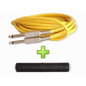 CABO P10 / P10 DE 10 METROS COM PLUGUES EM METAL MONO AMARELO + EMENDA/ADAPTADOR