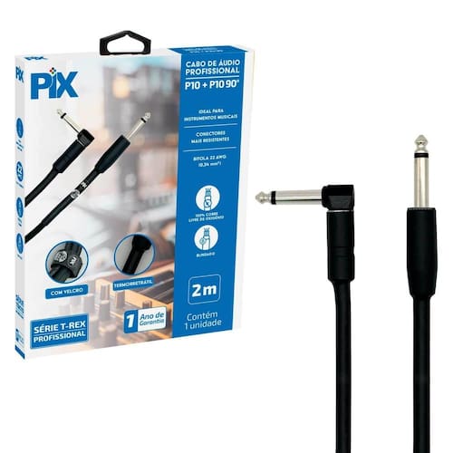 - Material do condutor: 100% cobre OFHC alta condutividade sem oxigênio - Blindagem: PVC de alta qualidade com proteção contra interferências terra e eletromagnéticas - Conectores: P10 Pro de 6,35 mm, desenvolvidos para maior robustez e durabilidade - Bitola do cabo: 22 AWG 0,34 mm , garantindo alta resistência e flexibilidade - Acessórios: tecido adesivo para organização e transporte do cabo com praticidade - Tipo do cabo: 90 graus, ideal para conexões em espaços reduzidos ou posicionamento prático - Metragem: 2 Metros -