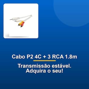 Com 1,8 metros de comprimento, o cabo proporciona flexibilidade e praticidade, permitindo conexões em diversas situações sem limitações de alcance. A tecnologia P2 4C integrada ao sistema 3 RCA garante uma transmissão de sinal estável e precisa, proporcionando uma experiência de som e imagem de alta qualidade. Além disso, os conectores de níquel asseguram uma longa vida útil e resistência ao desgaste, apresentando um produto que você pode utilizar e confiar por muito tempo.