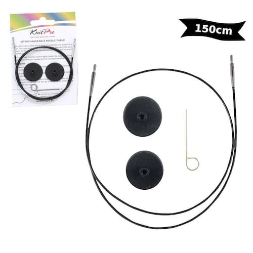 - Marca: KnitPro - Modelo: Cabo Para Agulha Circular Intercambiável - Referência: 10525 - Cor: Preto - Contém 4 peças - 01 Cabo de 150cm - 02 Tampas de extremidade - 01 Chave de cabo - Chave projetada para um aperto sem esforço - Tampas que se encaixam facilmente Marca: Knitpro