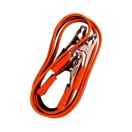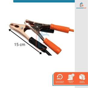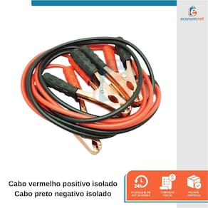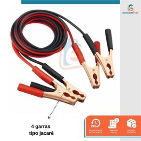 CARACTERÍSTICAS TÉCNICAS: Material: Cobre, pvc, garra de ferro Medidas: 2,5 metros Bitola: 3mm Capacidade: 300A Voltagem: 12V Material isolado 4 garras modelo jacaré Cabo vermelho positivo isolado Cabo preto negativo isolado Marca: Starfer Ref.: 6092160