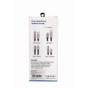 O cabo perfeito para quem busca praticidade, potência e compatibilidade total! Com sistema 4 em 1, ele permite carregar diversos dispositivos com apenas um único cabo, ideal para uso no dia a dia, viagens ou trabalho.