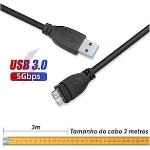 Cabo Para Hd Externo 3 Metros Usb Micro B 3.0 5Gbps