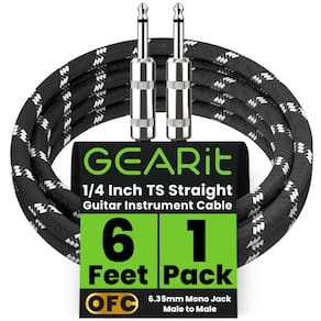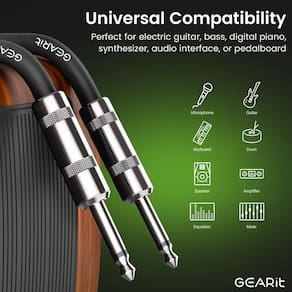 Este cabo para instrumento GEARit de 1,8 m foi projetado para músicos e profissionais de áudio que buscam conexões confiáveis e de alto desempenho entre instrumentos e amplificadores ou outros dispositivos de áudio. Com conectores TS macho retos de 6,35 mm em ambas as extremidades, oferece compatibilidade universal com guitarras elétricas, baixos, mixers, microfones, pedais de efeito e todos os equipamentos eletrônicos de áudio de 1/4".