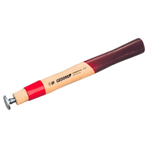 Cabo em madeira nobre, proteção Rotband-Plus e sistema de fixação em aço especial. Cabo com acabamento em pintura verniz incolor, empunhadura ergonômica e proteção Rotband-Plus em pintura na cor vermelha. Para reposição no Martelo para montador Rotband-Plus refs. 600 E, na Marreta de cobre Rotband-Plus refs. 622 H, e no Martelo para soldador Rotband-Plus ref. 677 H. Fornecimento unitário.