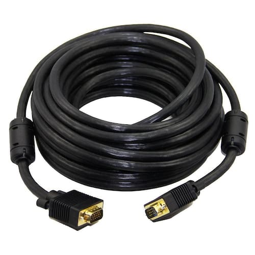 Cabo Para Monitor Vga Hd15M X Hd15M 20M Preto Com Filtro Aplicações - Notebook. PC. Monitor. TV LCD. TV PLASMA e outros Aparelhos com Conexão VGA (D-Sub) Conectores - Conectores de material Injetado de fábrica. - HD15 macho x HD15 macho (DB15/ VGA Macho) Cabo - 20 metros de comprimento - Filtro de Ferrite blindado injetado nas duas pontas para reduzir interferências. Cor: Preto