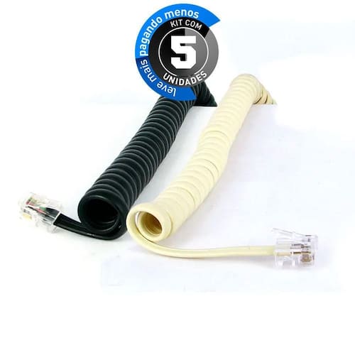 Cabo Para Telefonia Espiral Branco - 2 Metros - Kit Com 5 Um pacote com 5 cabos para telefonia espiral da Cirilo Cabos, a um preço fantástico.