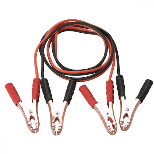 Cabos de cobre de 8 mm de diâmetro revestidos com PVC.Garras tipo jacaré em cobre com empunhaduras revestidas em PVC.Capacidade: 250 A.Comprimento: 2,5 m.Prático e versátil.Garras tipo jacaré para melhor fixação na bateria. Cabos em cores diferentes para melhor visualização e segurança durante a operação. As ferramentas são produzidas e testadas conforme requisitos internos de fabricação esegurança.