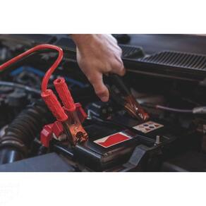 Conecte a outra garra do cabo vermelho no terminal positivo (+) da bateria carregada.