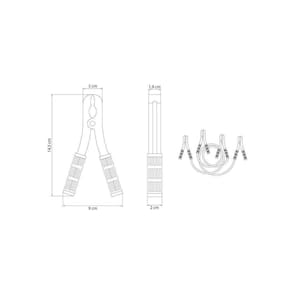 Garras tipo jacaré em cobre com empunhaduras revestidas em PVC.