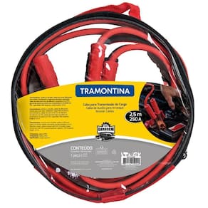 O Cabo para Transmissão de Carga Tramontina 250 A 2,5 m é uma peça prática e versátil. As garras tipo jacaré tornam a fixação da bateria muito mais eficiente e os cabos em cores diferentes auxiliam para uma melhor visualização e segurança durante a operação. Garantia de qualidade e segurança em todos os momentos!