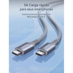 -marca ugreen -cor prata -comprimento 2 metros -material nylon trenzado -conector usb-c a usb-c
