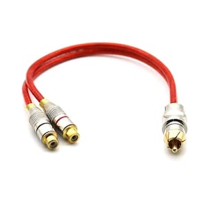 O cabo rca y 1 macho 2 fêmeas 5mm plug de metal é ideal para estender a saída rca do seu projeto de som e melhorar o desempenho. Possui conectores 1 macho e 2 fêmeas e é revestido em borracha para oferecer maior capacidade de condução e excelente isolamento elétrico. A malha interna trançada e dupla blindagem dos cabos garantem que não haja interferência e ruído no som.