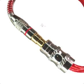O cabo RCA Prime com plug de metal da Svart aqui apresentado vem na cor vermelha, construído com 70% de cobre e 30% de alumínio (em linha positiva), e possui conector duplo de alta pressão banhados a ouro químico, conector esse de metal com plástico injetado para melhor qualidade na transmissão do som. Possui fio de cobre (AAC) livre de oxigênio (OFHC - Oxygen Free High Thermal Conductivity), isolamento dielétrico, proteção interna contra ruídos, e cortes polidos no encaixe do plug que evitam ruídos por trepidação.