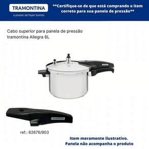Nosso empenho é procurar o que há de mais atual e funcional no mundo culinário e para organização da sua casa, priorizando sempre a qualidade e a versatilidade dos produtos. Cabo superior para panela tramontina allegra 6l Cabo superior da panela tramontina allegra, o cabo é antitérmico que garante ainda mais segurança durante o uso, pois reduzem a propagação do calor. Atenção: não acompanha cabo inferior, alças, válvula de segurança e pino. Somente o cabo superior. Referencia: 62676/903 Não serve nos demais modelos. conteúdo da embalagem: 1 cabo superior tramontina allegra 6l 2 parafusos Gostou Esse produto pode ser seu aguardamos sua compra Marca: Não Informado Ean: 7891116148013