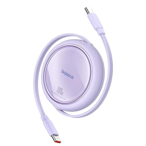 Cabo para carregar dispositivos Tipo-C, carregamento rápido de 100W, controle inteligente de temperatura, mini retrátil.Tipo