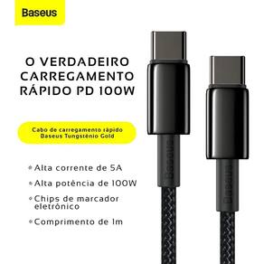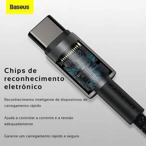 Cabo USB-C para USB-C com potência máxima de 100W, 1 metro de comprimento, revestimento em Nylon trançado, conectores em liga de zinco, chip E-Marker para gerenciamento de potência, compatível com PD, QC 3.0, QC 4.0 e PPS, velocidade de transmissão de dados de 480 Mbps (USB 2.0).Tipo
