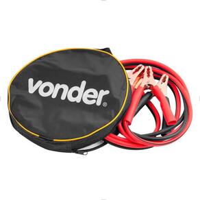 Ref.: 7899000025. Marca: Vonder. Capacidade máxima: 300 A. Tensão: 12 V e 24 V. Comprimento: 3 m. Bitola do cabo de transmissão: 10 mm². Material das garras do cabo de transmissão: Aço carbono cobreado. Cor: Vermelho e preto. Dimensões do Produto: 20cm x 05cm x 20cm. Massa aproximada (peso): 956 g.