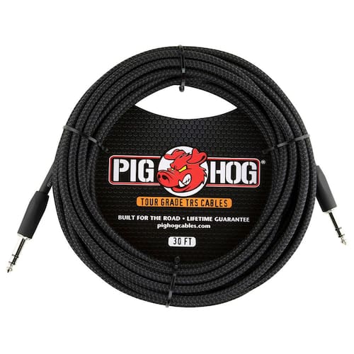 Cabo TRS de tecido preto Pig Hog PTRS30BK de 30 pés