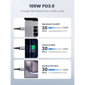 Sua construção combina resistência e sofisticação. O cabo é revestido por malha trançada de nylon de alta densidade, que oferece proteção contra desgaste e aumenta significativamente a durabilidade, evitando quebras ou fissuras mesmo após milhares de dobras. As extremidades são reforçadas com acabamento em liga de alumínio, proporcionando resistência adicional contra impactos e deformações, além de transmitir um visual moderno e elegante. Essa combinação de materiais garante que o cabo suporte o uso diário intenso sem perder desempenho. O conector USB-C é reversível, permitindo conexão em qualquer posição, o que evita desgaste excessivo e reduz as chances de danos no dispositivo ou no próprio cabo.