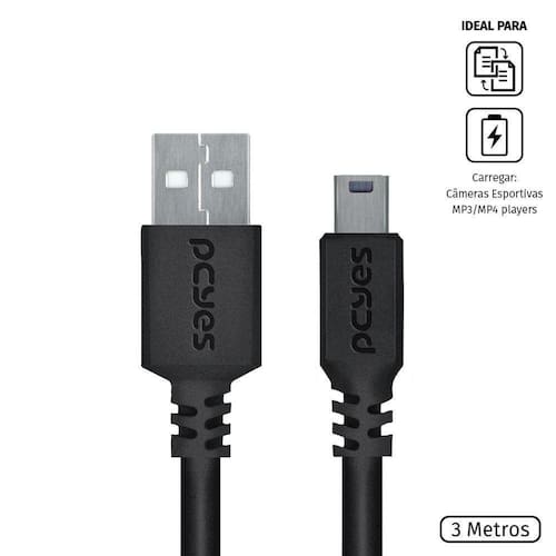 Os cabos da PCYES chegaram para determinar um novo patamar de qualidade para aqueles que buscam mais para seus equipamentos de nível profissional, unindo inovação a um custo acessível! São duas linhas completamente desenvolvidas para suprir as necessidades até do consumidor mais exigente, utilizando de design, alta tecnologia e materiais de qualidade para alcançar a excelência. Projetados com foco nos entusiastas, os cabos da PCYES possuem design exclusivo e 100% brasileiro, que combina robustez com minimalismo, além de levar em si a essência da marca, garantindo maior durabilidade e desempenho. Descrição: Este cabo permite conexão entre computadores e câmeras esportivas, celulares (antigos), MP3 / MP4 players, caixas de som pequenas, HDs externos, vídeo games portáteis ou controles sem fio de video games* de diversas marcas com conexão através de porta Mini USB B. * Verificar compatibilidade do controle