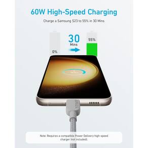 - Compatível com alta velocidade: carregue um Samsung S23 a 55% em apenas 30 minutos quando emparelhado com um carregador Power Delivery compatível (carregador não incluído).