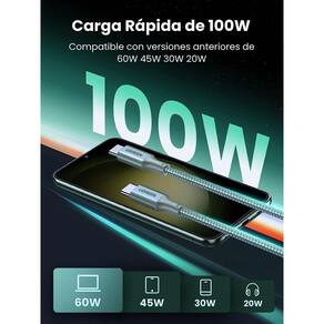 carregamento rápido de 100w o cabo ugreen usb c suporta vários protocolos de carregamento rápido, como pd, qc 3.0, fcp, a potência máxima é de até 20v/5a 100w .