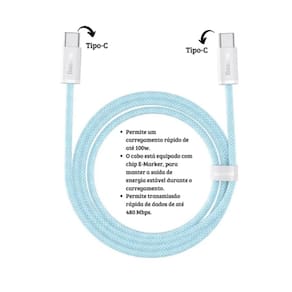 Cabo Usb C Pd 100W 20V/5A - 2 Metros Duas Pontas Tipo C