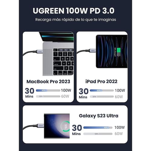 Além disso, também suporta uma taxa de transferência de dados de 480 mbps. Para atingir 100w, tanto o dispositivo quanto o carregador devem suportar pd100w 20v/5a .
